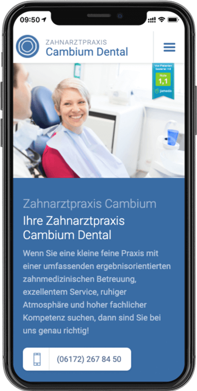 Websites von cambium.digital sitzen perfekt wie eine Krone. Wir konzipieren, gestalten und programmieren Ihren Internetauftritt so, dass er zu Ihnen passt und Ihre Patienten erreicht. Bei uns wird nicht mit der heißen Nadel gestrickt: Wir legen großen Wert aufs Design und arbeiten gleichzeitig akribisch an der unsichtbaren Technik unter der Haube. Dann klappt’s auch mit der Suchmaschinenoptimierung.